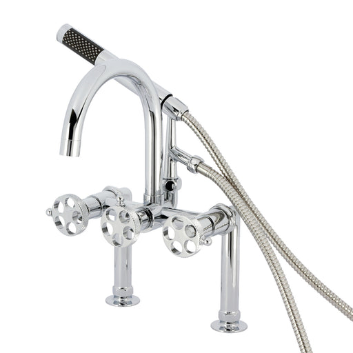 Kingston BrassKingston Sona AE8101RKX - Webb Three-Handle 2-Hole Deck-Mount Clawfoot Tub Faucet with Knurled Handle and Hand Shower, Polished Chrome A touch o...