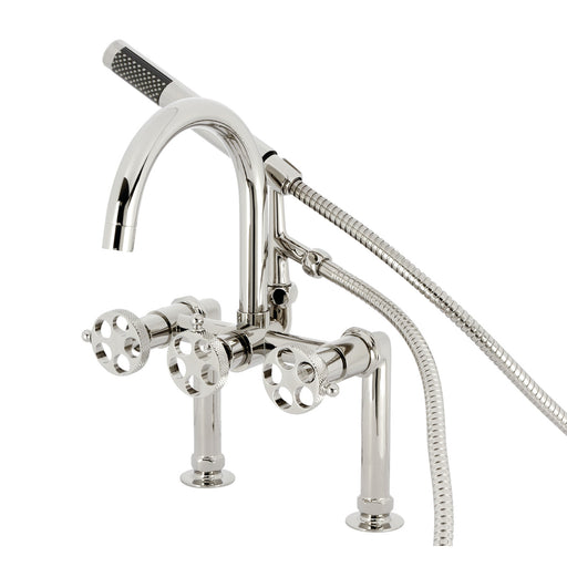 Original price $1,369.95Original price $1,369.95 - Original price $1,369.95Original price $1,369.95Current price $1,027.46$1,027.46 - $1,027.46Current price $1,027.46| /Kingston Sona AE8106RKX - Webb Three-Handle 2-Hole Deck-Mount Clawfoot Tub Faucet with Knurled Handle and Hand Shower, Polished Nickel