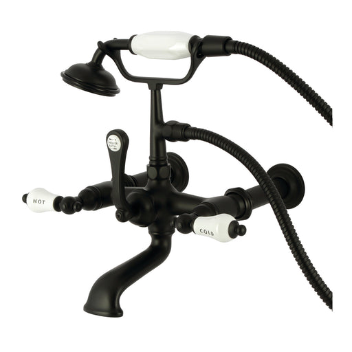 Kingston BrassKingston Heirloom CC545T0 - Vintage Three-Handle 2-Hole Tub Wall Mount Clawfoot Tub Faucet with Hand Shower, Matte Black Wall mount clawfoot tub...