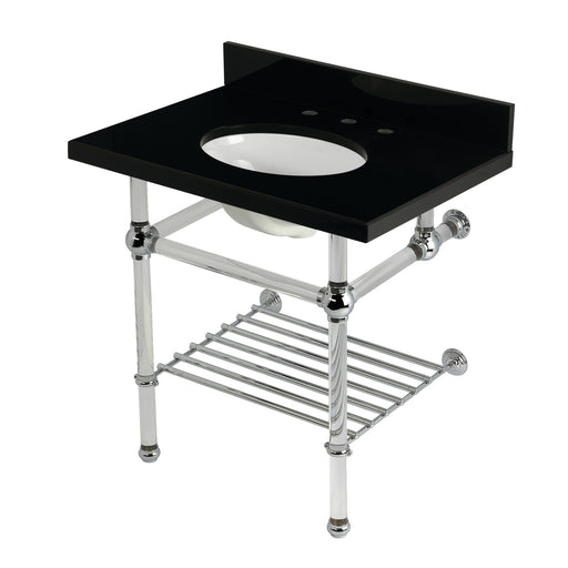 Original price $2,689.85Original price $2,689.85 - Original price $2,689.85Original price $2,689.85Current price $2,017.39$2,017.39 - $2,017.39Current price $2,017.39| /Kingston Tulare KVPK3030KASQB1 - Templeton 30-Inch Black Granite Console Sink with Acrylic Legs and Shelf (8-Inch, 3-Hole), Black Granite/Polished Chrome