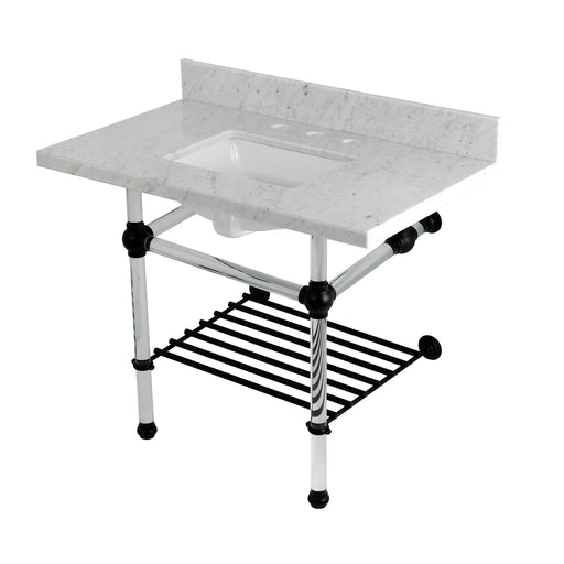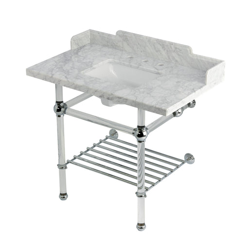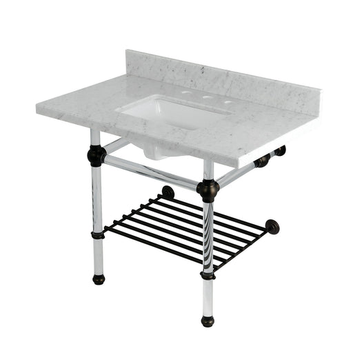 Kingston BrassKingston Tulare LMS3630MASQB6 - Pemberton 36-Inch Carrara Marble Console Sink with Acrylic Legs and Shelf (8-Inch, 3-Hole), Carrara Marble White/P...