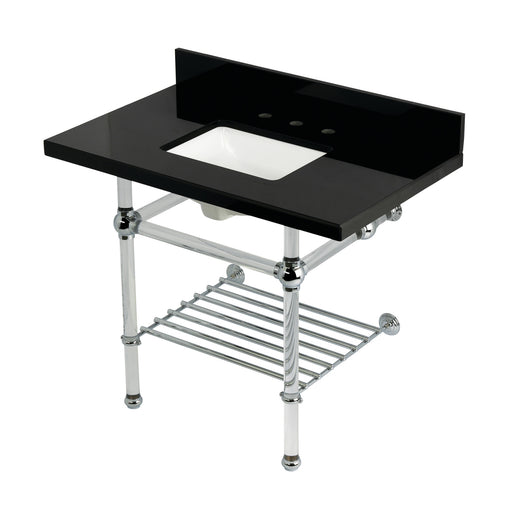 Kingston BrassKingston Tulare KVPK3630KASQB7 - Templeton 36-Inch Black Granite Console Sink with Acrylic Legs and Shelf (8-Inch, 3-Hole), Black Granite/Brushed ...
