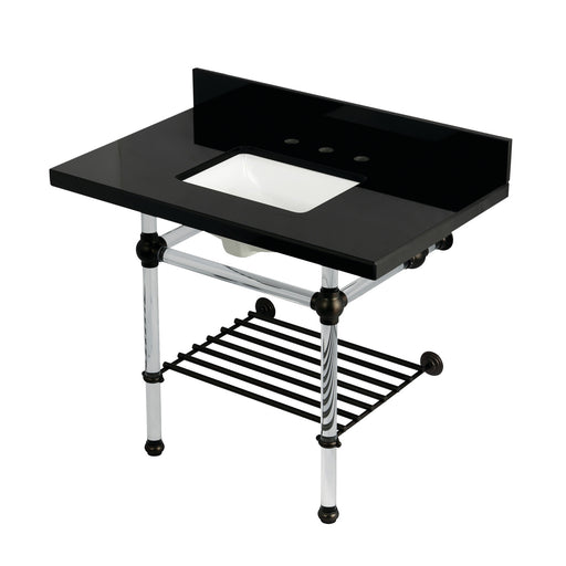 Kingston BrassKingston Tulare KVPK3630KASQB0 - Templeton 36-Inch Black Granite Console Sink with Acrylic Legs and Shelf (8-Inch, 3-Hole), Black Granite/Matte Bl...
