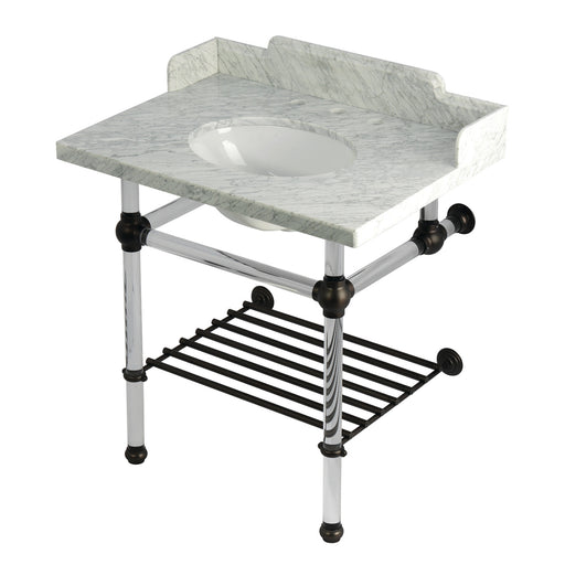 Kingston BrassKingston Tulare KVPB3030MASQB5 - Templeton 30-Inch Carrara Marble Console Sink with Acrylic Legs and Shelf (8-Inch, 3-Hole), Carrara Marble White/...
