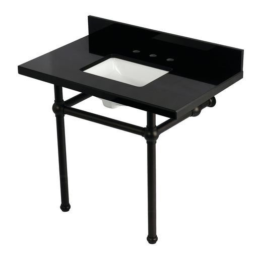 Kingston BrassKingston Heirloom KVPK3630KBSQ5 - Templeton 36-Inch Black Granite Console Sink with Brass Legs (8-Inch, 3-Hole), Black Granite/Oil Rubbed Bronze ...
