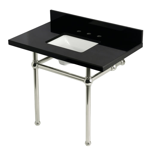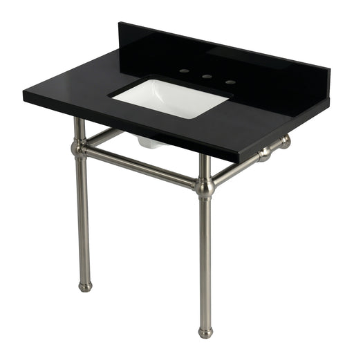 Kingston BrassKingston Heirloom KVPK3630KBSQ8 - Templeton 36-Inch Black Granite Console Sink with Brass Legs (8-Inch, 3-Hole), Black Granite/Brushed Nickel En...