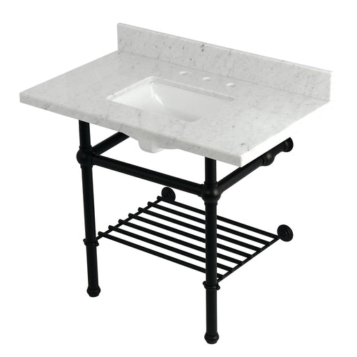 Original price $2,774.85Original price $2,774.85 - Original price $2,774.85Original price $2,774.85Current price $2,081.14$2,081.14 - $2,081.14Current price $2,081.14| /Kingston Heirloom KVPB3630MBSQB0 - Templeton 36-Inch Carrara Marble Console Sink with Brass Legs and Shelf (8-Inch, 3-Hole), Carrara Marble White/Matte Black