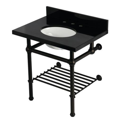 Kingston BrassKingston Heirloom KVPK3030KBB0 - Templeton 30-Inch Black Granite Console Sink with Brass Legs and Shelf (8-Inch, 3-Hole), Black Granite/Matte Blac...