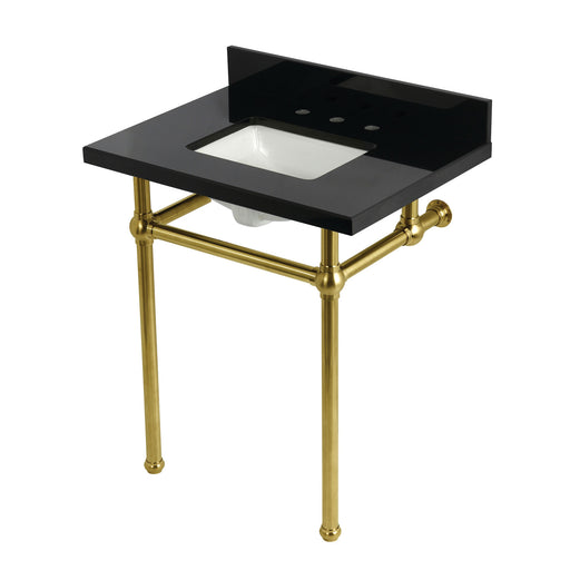 Kingston BrassKingston Heirloom KVPK30KBSQ7 - Templeton 30-Inch Black Granite Console Sink with Brass Legs (8-Inch, 3-Hole), Black Granite/Brushed Brass Enhan...