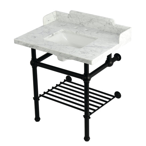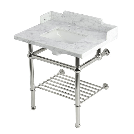 Kingston BrassKingston Heirloom LMS3030MBSQB1 - Pemberton 30-Inch Carrara Marble Console Sink with Brass Legs and Shelf (8-Inch, 3-Hole), Carrara Marble White/P...