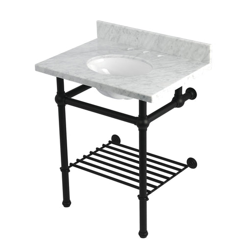 Original price $2,639.85Original price $2,639.85 - Original price $2,639.85Original price $2,639.85Current price $1,979.89$1,979.89 - $1,979.89Current price $1,979.89| /Kingston Heirloom KVPB30MBB0 - Templeton 30-Inch Carrara Marble Console Sink with Brass Legs and Shelf (8-Inch, 3-Hole), Carrara Marble White/Matte Black