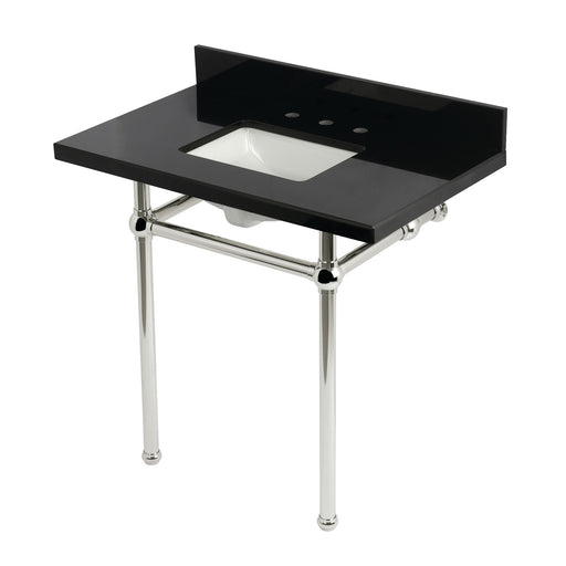 Kingston BrassKingston Heirloom KVPK30KB1 - Templeton 30-Inch Black Granite Console Sink with Brass Legs (8-Inch, 3-Hole), Black Granite/Polished Chrome Enhan...