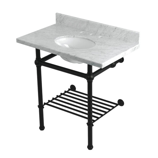 Original price $2,754.85Original price $2,754.85 - Original price $2,754.85Original price $2,754.85Current price $2,066.14$2,066.14 - $2,066.14Current price $2,066.14| /Kingston Heirloom KVPB36MBB0 - Templeton 36-Inch Carrara Marble Console Sink with Brass Legs and Shelf (8-Inch, 3-Hole), Carrara Marble White/Matte Black