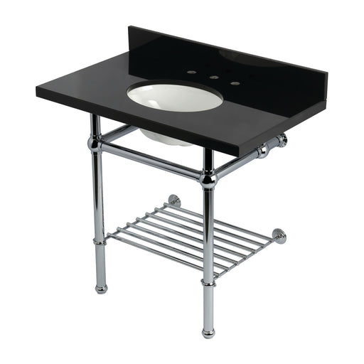 Kingston BrassKingston Heirloom KVPK30KBSQB8 - Templeton 30-Inch Black Granite Console Sink with Brass Legs and Shelf (8-Inch, 3-Hole), Black Granite/Brushed Ni...