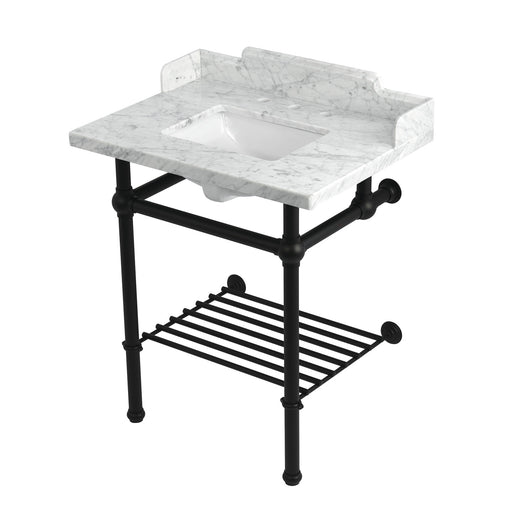 Kingston BrassKingston Heirloom LMS30MBSQB0 - Pemberton 30-Inch Carrara Marble Console Sink with Brass Legs and Shelf (8-Inch, 3-Hole), Carrara Marble White/Mat...