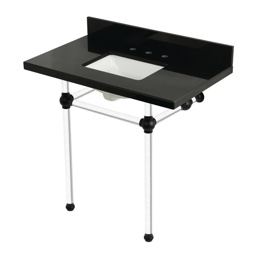 Kingston BrassKingston Tulare KVPK36KASQ0 - Templeton 36-Inch Black Granite Console Sink with Acrylic Legs (8-Inch, 3-Hole), Black Granite/Matte Black Enhance...