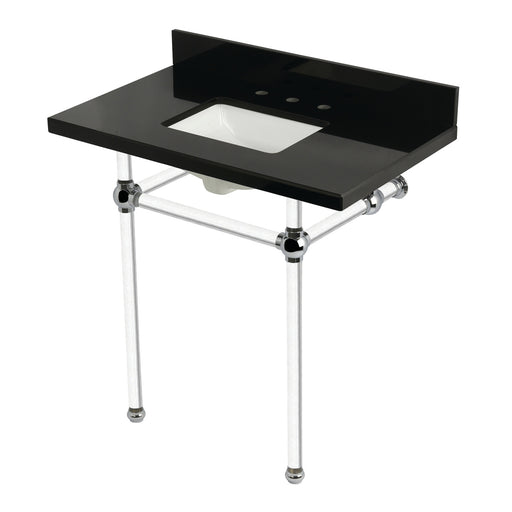 Kingston BrassKingston Tulare KVPK30KA1 - Templeton 30-Inch Black Granite Console Sink with Acrylic Legs (8-Inch, 3-Hole), Black Granite/Polished Chrome Enhan...