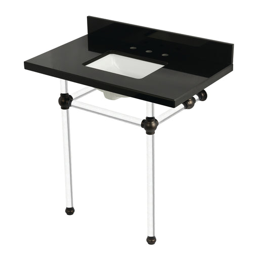 Kingston BrassKingston Tulare KVPK36KASQ5 - Templeton 36-Inch Black Granite Console Sink with Acrylic Legs (8-Inch, 3-Hole), Black Granite/Oil Rubbed Bronze E...