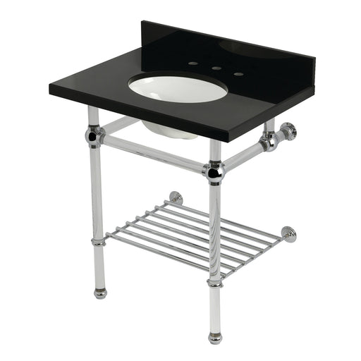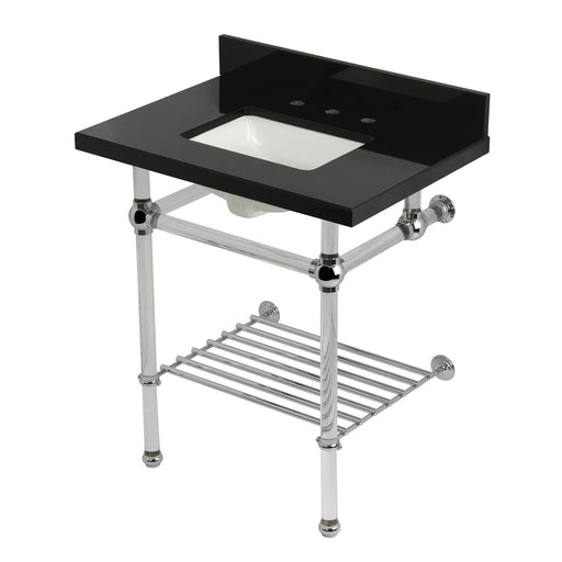 Kingston BrassKingston Tulare KVPK30KAB1 - Templeton 30-Inch Black Granite Console Sink with Acrylic Legs and Shelf (8-Inch, 3-Hole), Black Granite/Polished Chr...