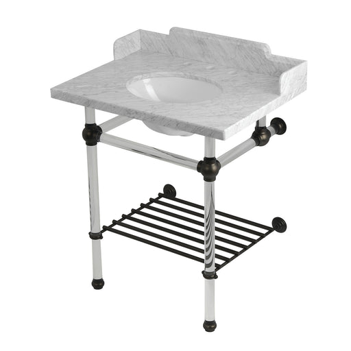 Kingston BrassKingston Tulare LMS30MAB5 - Pemberton 30-Inch Carrara Marble Console Sink with Acrylic Legs and Shelf (8-Inch, 3-Hole), Carrara Marble White/Oil R...
