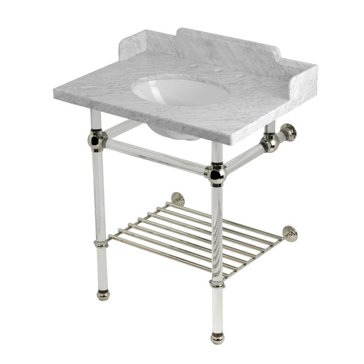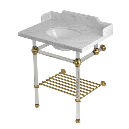 Kingston BrassKingston Tulare LMS30MAB1 - Pemberton 30-Inch Carrara Marble Console Sink with Acrylic Legs and Shelf (8-Inch, 3-Hole), Carrara Marble White/Polis...