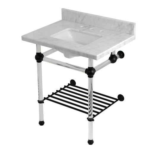 Kingston BrassKingston Tulare KVPB30MASQB6 - Templeton 30-Inch Carrara Marble Console Sink with Acrylic Legs and Shelf (8-Inch, 3-Hole), Carrara Marble White/Po...