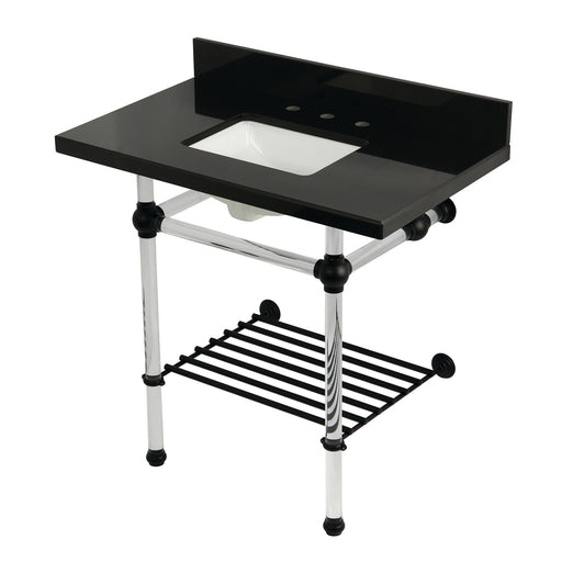 Kingston BrassKingston Tulare KVPK30KAB0 - Templeton 30-Inch Black Granite Console Sink with Acrylic Legs and Shelf (8-Inch, 3-Hole), Black Granite/Matte Black ...