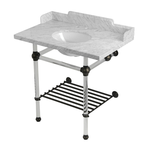 Kingston BrassKingston Tulare LMS36MAB5 - Pemberton 36-Inch Carrara Marble Console Sink with Acrylic Legs and Shelf (8-Inch, 3-Hole), Carrara Marble White/Oil R...