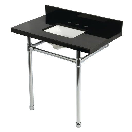 Kingston BrassKingston Tulare KVPK36K8SQ1ST - Dreyfuss 36-Inch Black Granite Console Sink with Stainless Steel Legs (8-Inch, 3-Hole), Black Granite/Polished Chr...