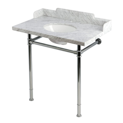 Kingston BrassKingston Heirloom KMS36228M81 - Wesselman 36-Inch Carrara Marble Console Sink with Stainless Steel Legs (8-Inch, 3-Hole), Carrara Marble White/Pol...