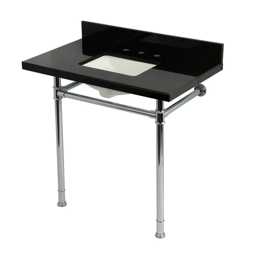 Kingston BrassKingston Tulare KVPK36227K381 - Imperial 36-Inch Black Granite Console Sink with Stainless Steel Legs (8-Inch, 3-Hole), Black Granite/Polished Chr...