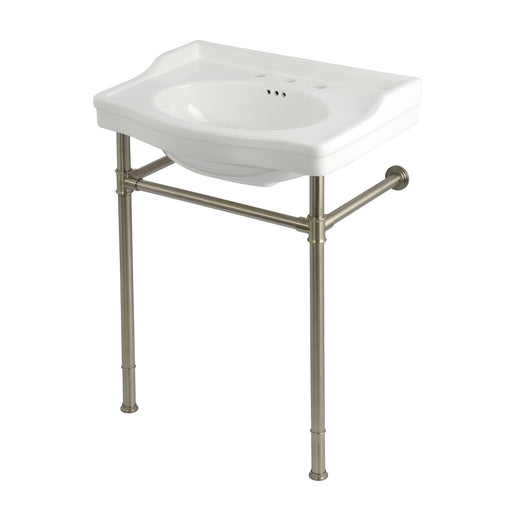 Kingston BrassKingston Heirloom KVPB30229W388 - Victorian 30-Inch Ceramic Console Sink with Stainless Steel Legs (8-Inch, 3-Hole), White/Brushed Nickel Enhanc...