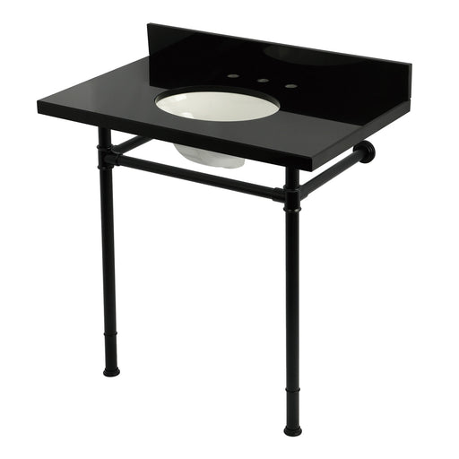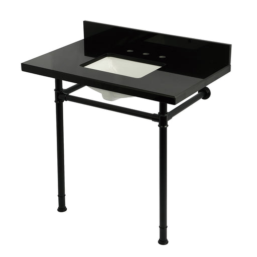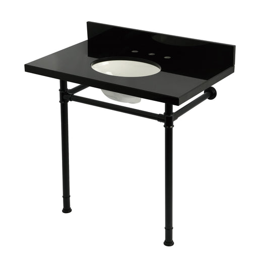Kingston BrassKingston Tulare KVPK36228K380 - Imperial 36-Inch Black Granite Console Sink with Stainless Steel Legs (8-Inch, 3-Hole), Black Granite/Matte Black ...