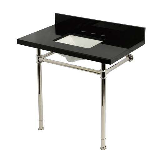 Kingston BrassKingston Tulare KVPK36228K386 - Imperial 36-Inch Black Granite Console Sink with Stainless Steel Legs (8-Inch, 3-Hole), Black Granite/Polished Nic...