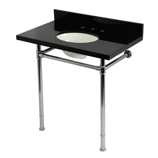 Kingston BrassKingston Tulare KVPK36228K81 - Imperial 36-Inch Black Granite Console Sink with Stainless Steel Legs (8-Inch, 3-Hole), Black Granite/Polished Chro...
