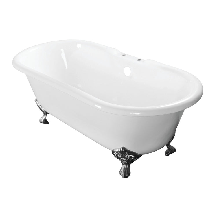 Kingston Heirloom VCT7D603017NB1 - Aqua Eden 60-Inch Cast Iron Oval Double Ended Clawfoot Tub (7-Inch Faucet Drillings), White/Polished Chrome