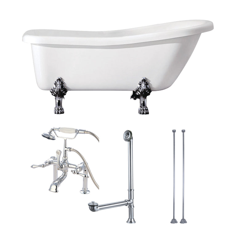 Kingston Heirloom KVTDE692823C1 - Aqua Eden 67-Inch Acrylic Oval Single Slipper Clawfoot Tub with Faucet, Drain and Supply Lines Combo, Glossy White/Polished Chrome