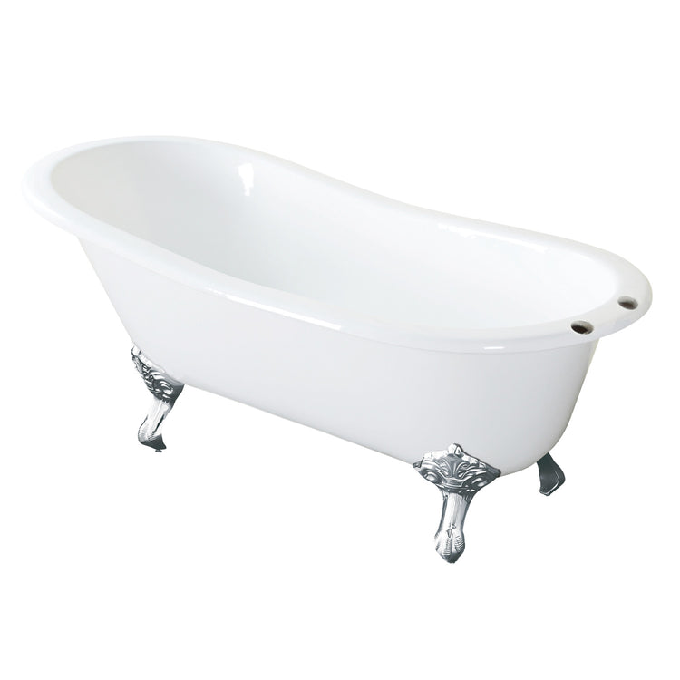 Kingston Heirloom NHVCT7D653129B1 - Aqua Eden 61-Inch Cast Iron Oval Single Slipper Clawfoot Tub (7-Inch Faucet Drillings), White/Polished Chrome