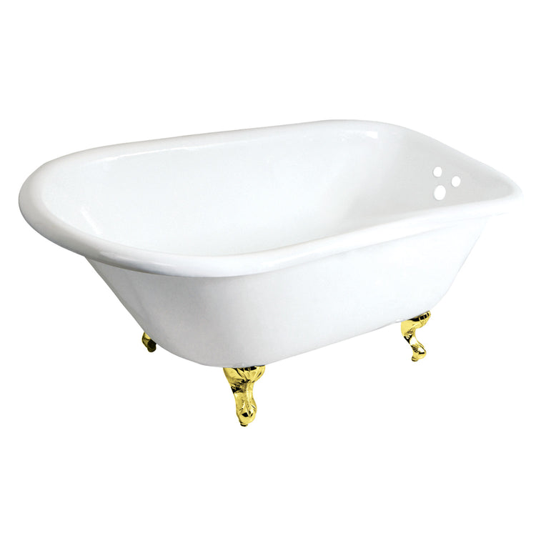 Kingston Heirloom VCT3D483018NT2 - Aqua Eden 48-Inch Cast Iron Classic Flat-Rim Roll Top Clawfoot Tub (3-3/8-Inch Wall Drillings), White/Polished Brass