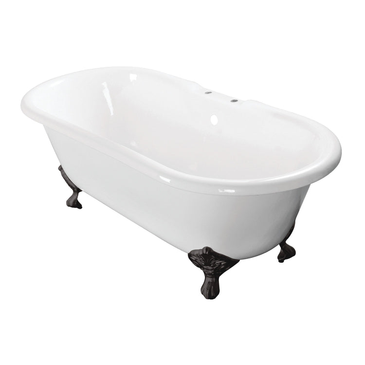 Kingston Heirloom VCT7D603017NB0 - Aqua Eden 60-Inch Cast Iron Oval Double Ended Clawfoot Tub (7-Inch Faucet Drillings), White/Matte Black