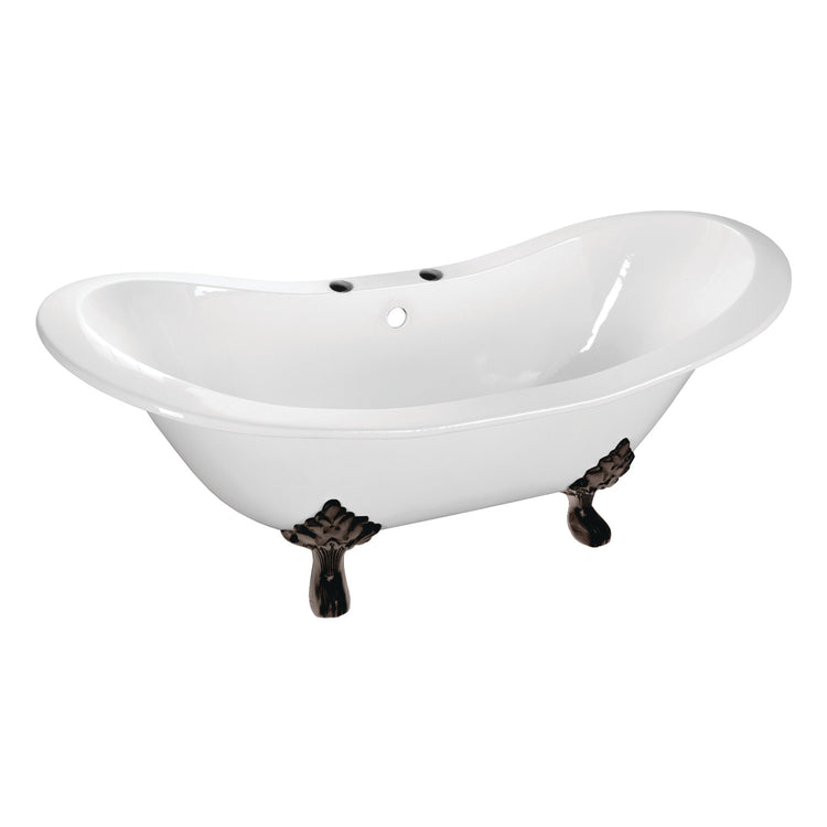 Kingston Heirloom VCT7DS6130NC5 - Aqua Eden 61-Inch Cast Iron Oval Double Slipper Clawfoot Tub (7-Inch Faucet Drillings), White/Oil Rubbed Bronze