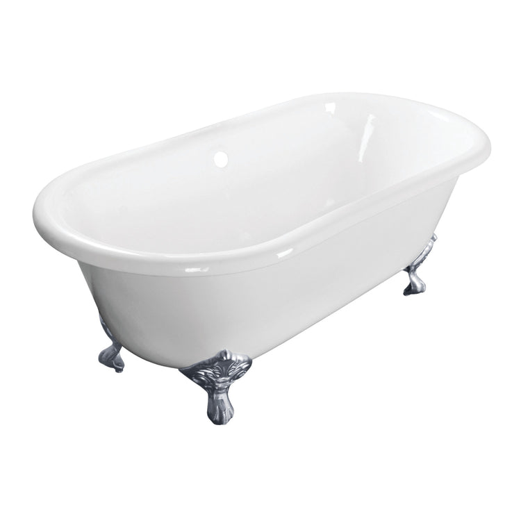 Kingston Heirloom VCTND603017NB1 - Aqua Eden 60-Inch Cast Iron Oval Double Ended Clawfoot Tub (No Faucet Drillings), White/Polished Chrome