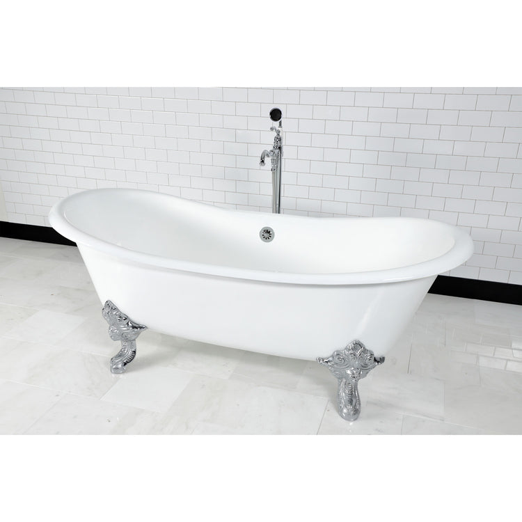 Kingston Heirloom VCTNDS7231NL1 - Aqua Eden 72-Inch Cast Iron Oval Double Slipper Clawfoot Tub (No Faucet Drillings), White/Polished Chrome