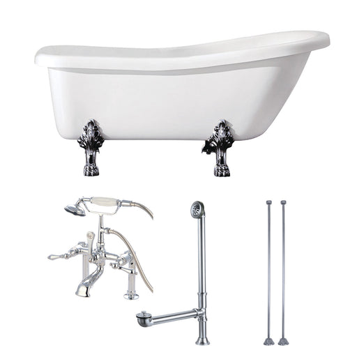Kingston BrassKingston Heirloom KTDE692823C5 - Aqua Eden 67-Inch Acrylic Oval Single Slipper Clawfoot Tub with Faucet Drain and Supply Lines Combo, Glossy White...