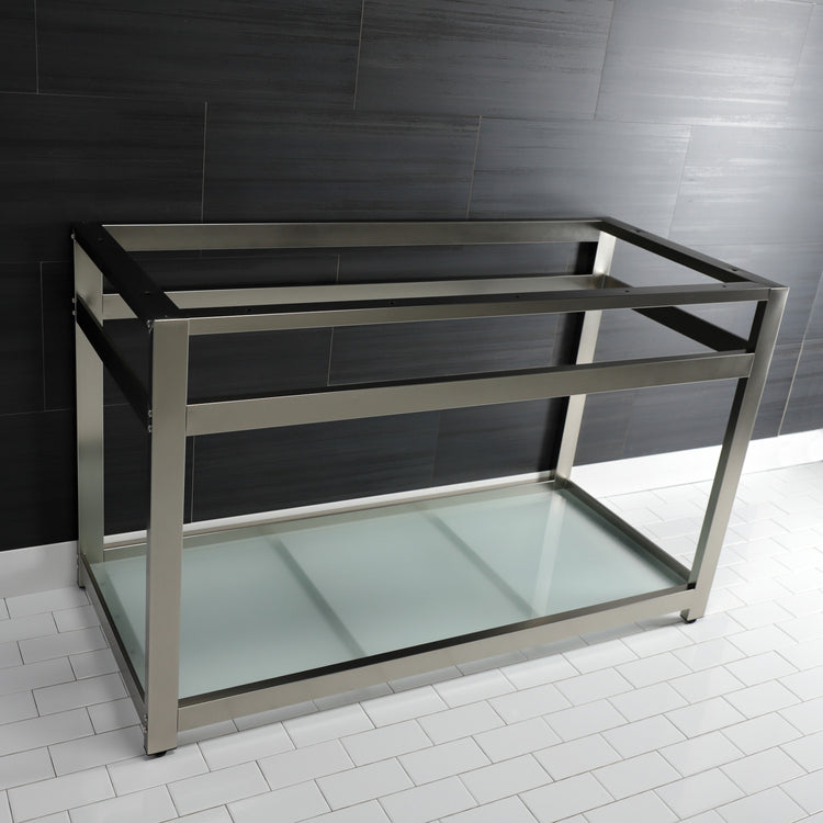 Kingston Commercial VSP4922B8 Steel Console Sink Base with Glass Shelf, Brushed Nickel