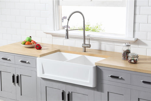 Highly desired for its spacious design and timeless look, farmhouse kitchen sinks are the epitome of style and luxury in any kitchen. Farmhouse kitchen sinks are known for its deep depth, unlike that of most traditional sinks, and its pristine looks that will leave your kitchen with a new statement piece. Find your next farmhouse kitchen sinks with Kingston and our large collection of farmhouse sinks. Coming in a wide array of styles and finishes, our high-quality farmhouse sinks will leave your kitchen stylish and full of functionality with little to no effort.