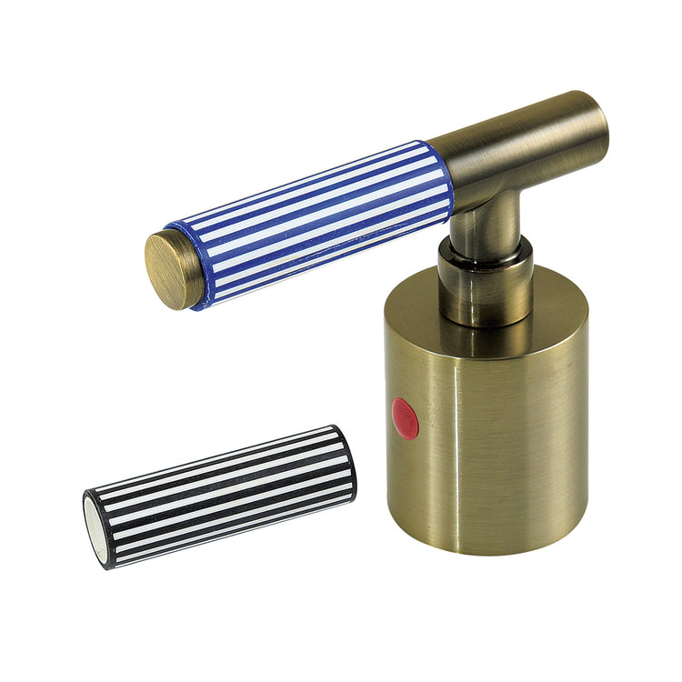 This Kaiser faucet handle from Kingston Brass with its modern sleek lines will enhance any faucet with a D style broach, This faucet includes 2 sets of Neoprene handle inserts in black and blue stripped color schemes to provide ample design options.