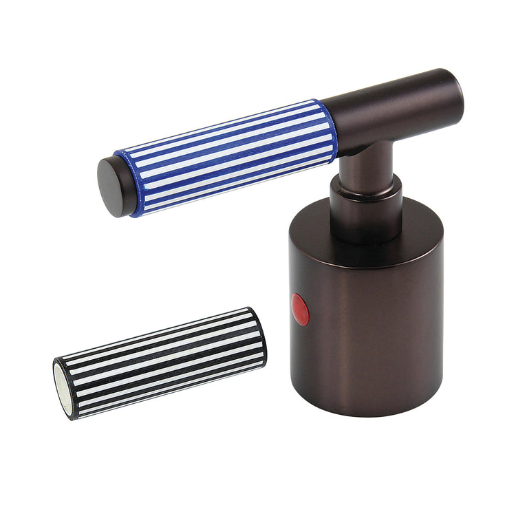 This Kaiser faucet handle from Kingston Brass with its modern sleek lines will enhance any faucet with a D style broach, This faucet includes 2 sets of Neoprene handle inserts in black and blue stripped color schemes to provide ample design options.