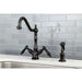 Kingston Heirloom KS1235PKLBS - Duchess Two-Handle 2-or-4 Hole Kitchen Faucet with Brass Sprayer, Oil Rubbed Bronze
