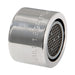 Installed at the ends of household faucets, aerators are designed with mesh screens to reduce splashing and dripping in sinks. A mixture of water and air is delivered while also helping to conserve water. This aerator's thread size: US female 3/4"-27 UNS connection. The water flow rate is 1.8 gallons per minute (GPM).